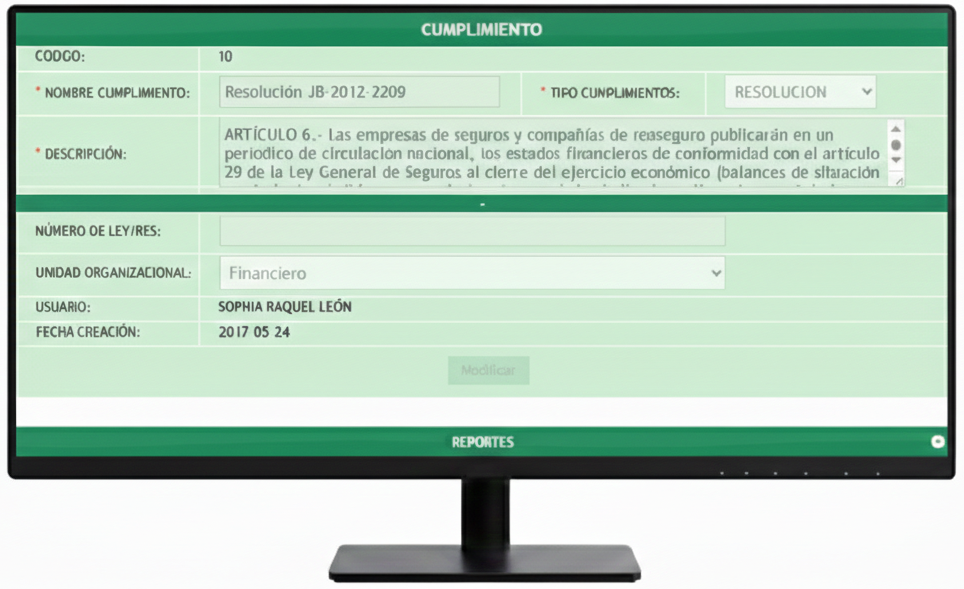Gestiona el cumplimiento oportuno de toda la normatividad interna y externa aplicable a la empresa. Gestiona los requerimientos normativos o de consulta de entidades u órganos de control. Envía alertas a los responsables de la preparación y envío de los reportes normativos, de impuestos o informativos que debe enviar la compañía a entidades, órganos de control o partes interesadas.